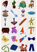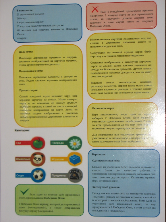 В новой игре нет мешочка для карточек и песочных часов, ну при желании часы в любой аптеке продаются. Карточек 240 (в келбазаре было 310, в версии джуниор было 120), и теперь предметы поделены на категории: еда, природа, животные, игрушки, спорт, предметы; можно называть категорию, чтобы облегчить угадывание, а можно и не называть. Сами карточки стали побольше, на фото рядом ручка, чтобы понять размер. Картинки тоже изменились