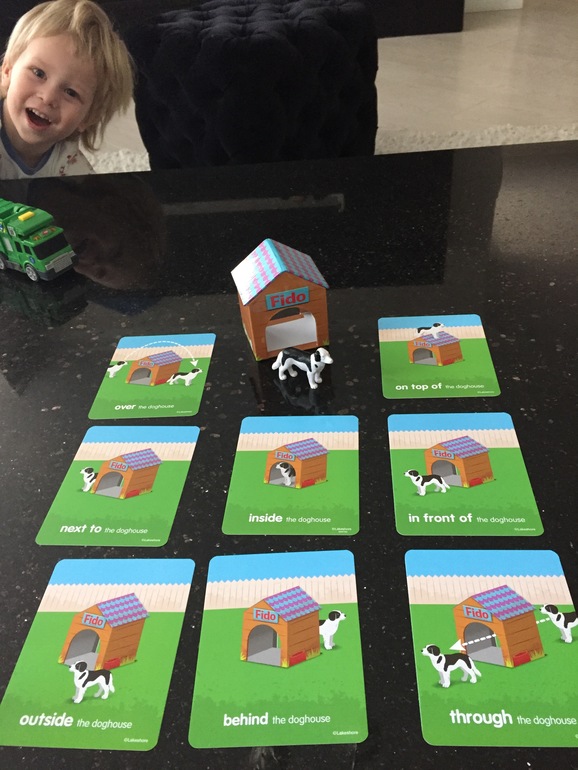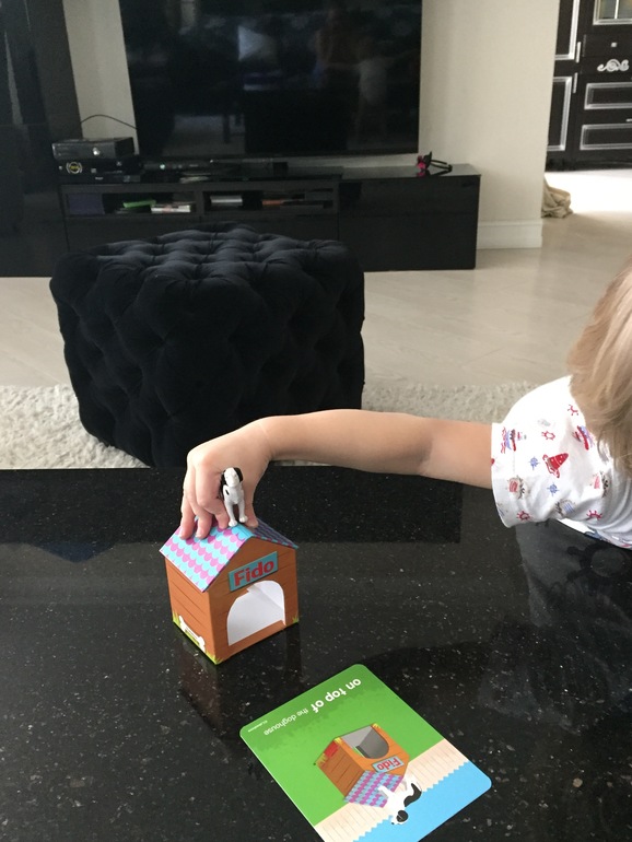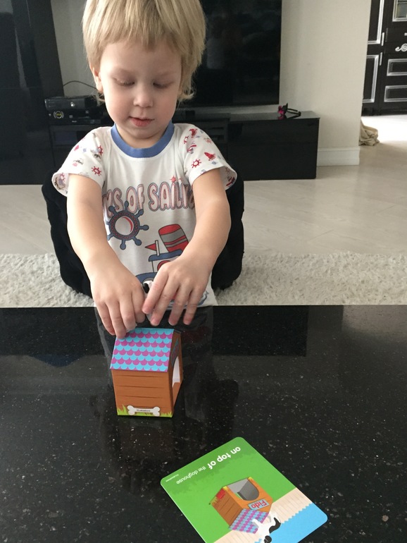 потом играли с собачкой, повторяли понятия перед, сзади, внутри, через рядом и т.д