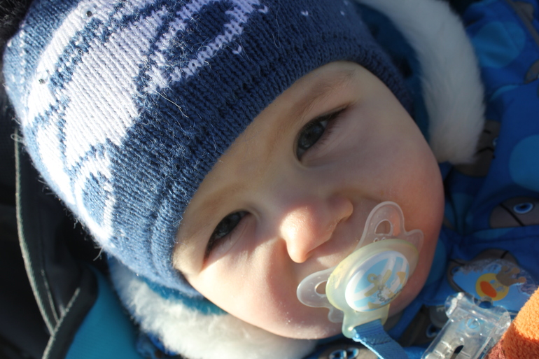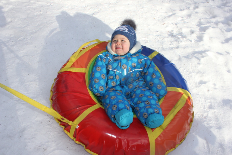 Потом и Темика на ватрушке покатали. Он так смеялся. понравилось... а потом заплакать вдруг решил, уж и не знаю почему.