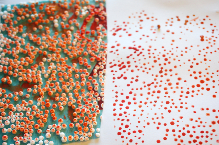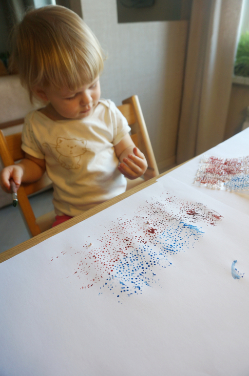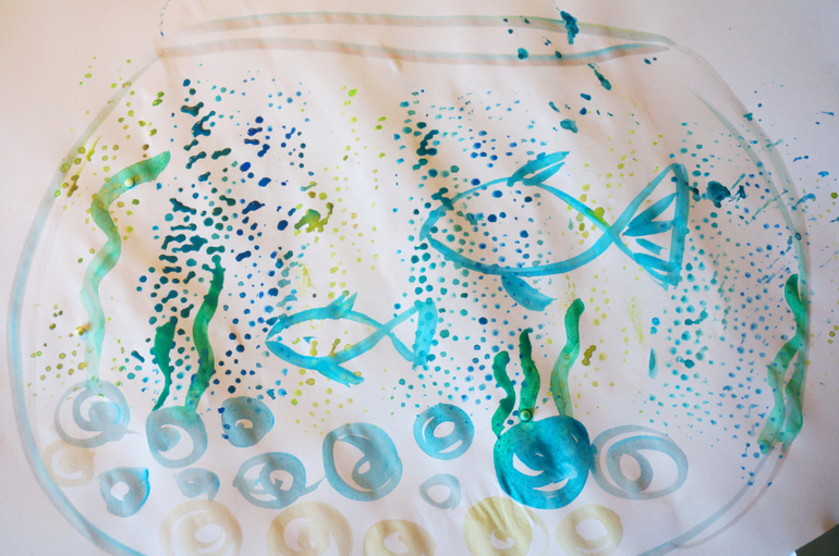 Художка ( красим, рисуем , придумываем новые способы рисовать)После ремонта у нас остались остатки подложки под паркет - это такая пленка, на которой прилеплено множество мелких белых шариков. Я, как истинная творческая натура, не выкидываю подобные вещи, а использую в деле. Мы с Машей сегодня устроили аля-монотипию. Раскрашивали поверхность шариков краской, делали отпечатки на бумаге, а потом еще дорисовывали образы. Все получилось так воздушно-пузырчато!