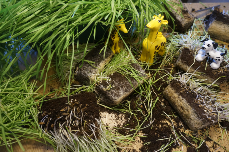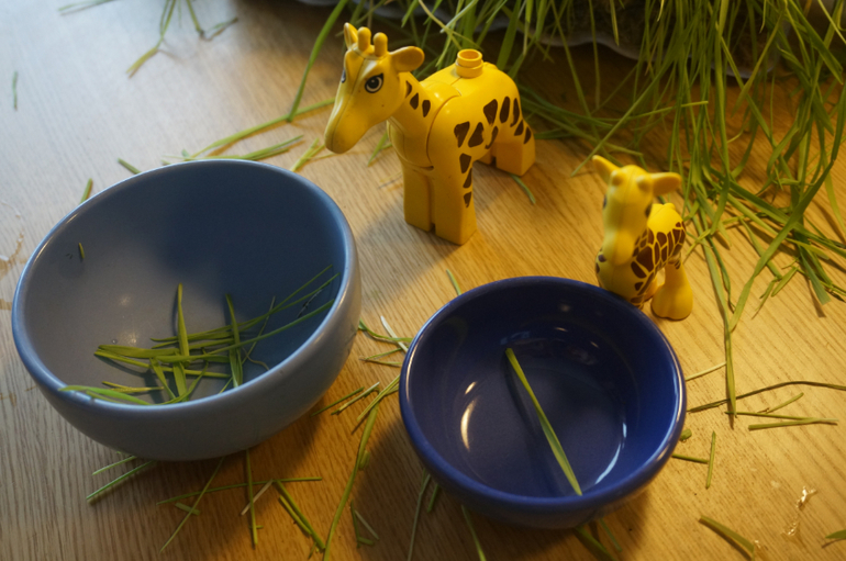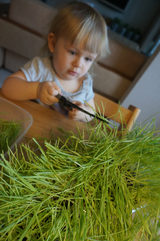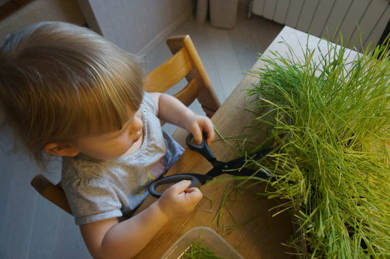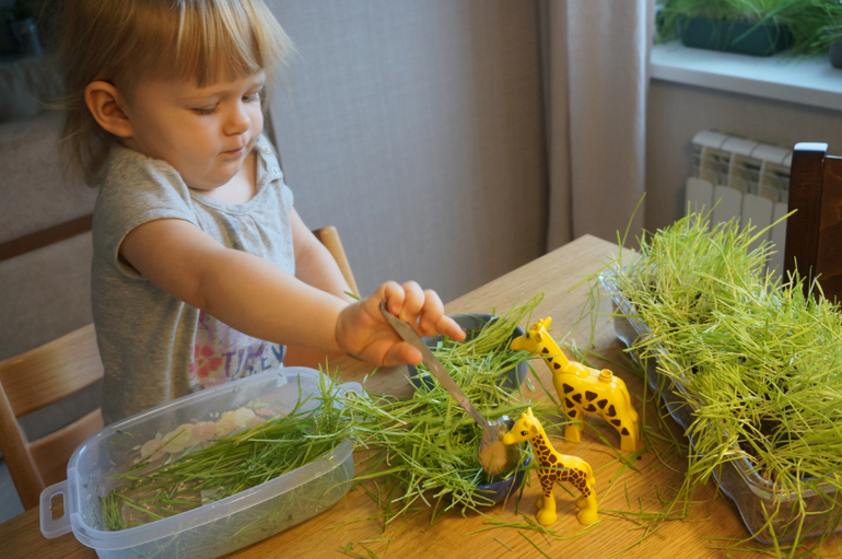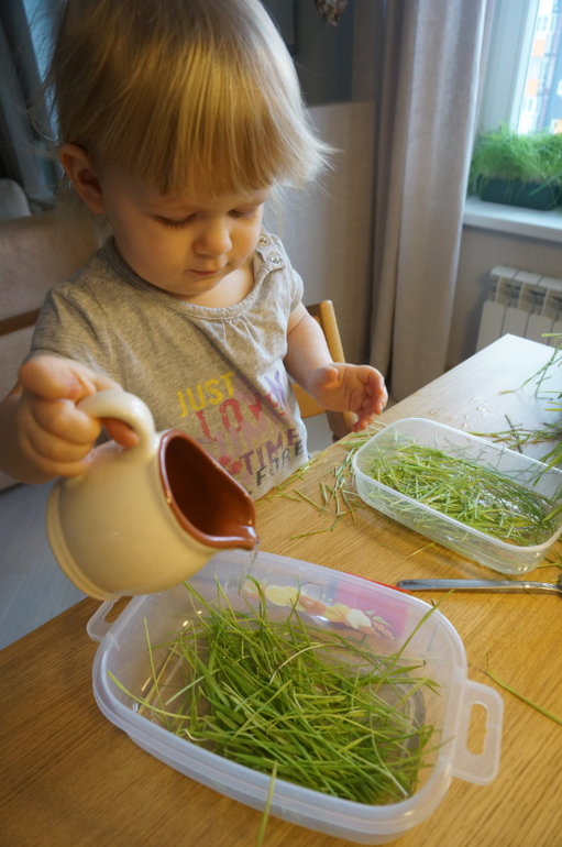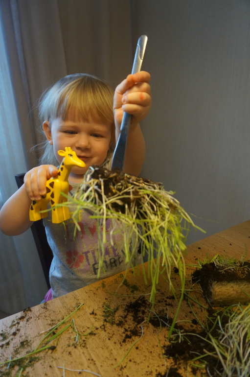 Игры и игрушки от 0 до 99 (Про игры и игрушки которые подойдут и большим и маленьким)Недавно я писала, как мы выращивали рожь на окне. Теперь она уже высокая и полегла, Маша решила, что пора ее стричь, делать суп, кормить жирафов. Суп варила по уму, вода, трава, соль, специи, тарелочки...А после обеда мы вывернули травку наизнанку, полюбовались мощными корнями, разрезали на части, чтобы увидеть срез зерен и ростков, а потом кромсали все это безжалостно! Зато весь процесс теперь знаем со всех сторон!