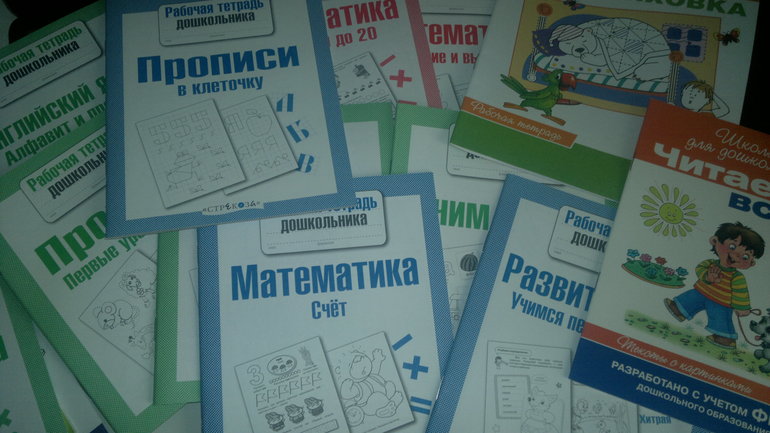 Школа дошколят (все о изучении букв, цифр, развитии логики, памяти, воображения, мышления)В Ашане нашла серию рабочих тетрадей для дошкольников.По математике, русский язык,английский яз,логическое мышление и т.д.
