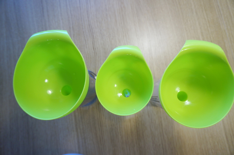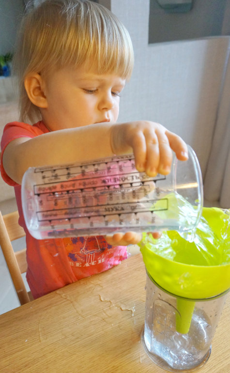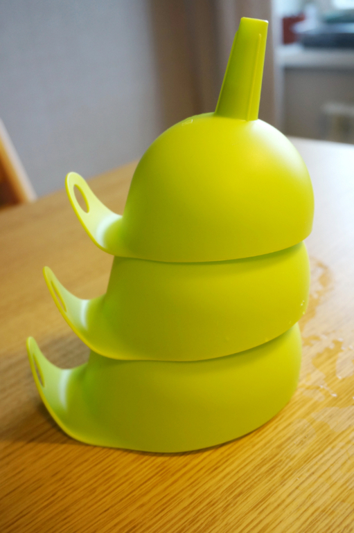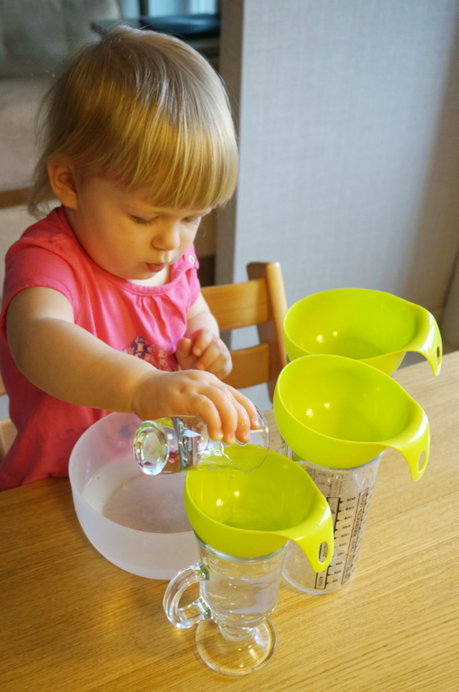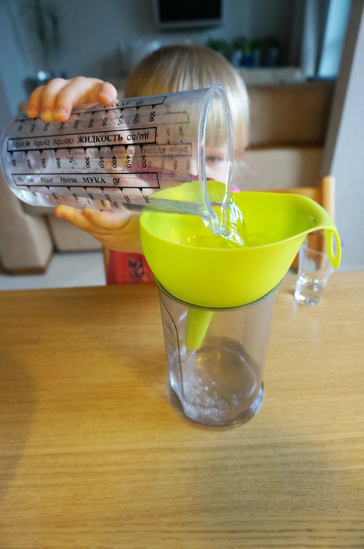 Игры и игрушки от 0 до 99 (Про игры и игрушки которые подойдут и большим и маленьким)Мне на 8 марта подарили набор ярких воронок разного размера. Для хозяйства они не так часто нужны, а вот Маша сразу их оприходовала. Простой процесс-переливание воды через воронки хорош в любом возрасте, зато сколько анализа и удовольствия. Из большого в маленький сосуд, из маленького в большой, как вода льется струйкой через горлышко - столько открытий! Да еще и пирамидку из них можно сложить! Пробуйте!