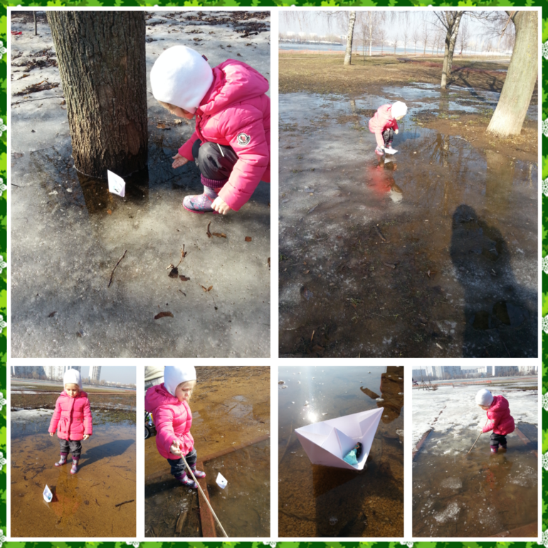 Подвижные игры и спорт ( зарядка, игры на улице и в в воде, танцы, игры с мячом и.т.д.)Сегодня мы бродили по лужам! Запускали бумажные кораблики с принцессами на борту:)))