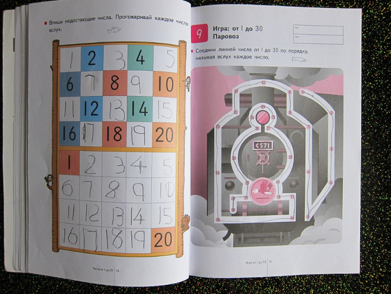 Меня смутило написание некоторых цифр, но т.к. задачей пособия не стоит научить писать, то я закрыла на это глаза.