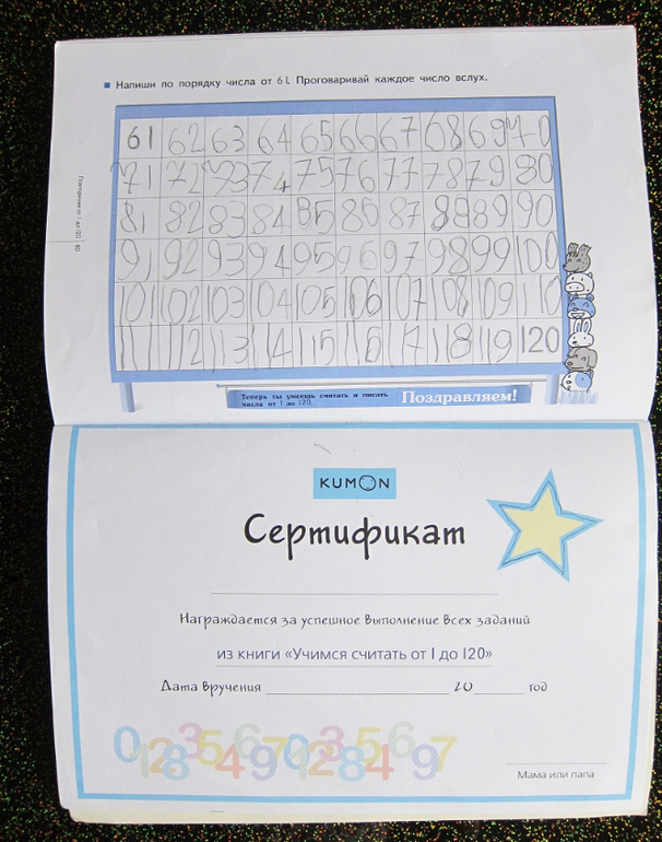 В каждом пособии есть бонус - сертификат. Желание его вырезать и повесить на стену очень подбодряло сына при выполнении задания. Он каждый раз считал, сколько еще осталось выполнить заданий, чтобы стать его обладателем.