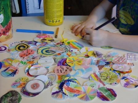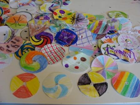 Может, кото-то еще заинтересует)) Очень интересно угадывать, что получится при вращении того или иного рисунка. А еще мв раскрасили целый лист бумаги и из него вырезали кружочки. Но больше всего саше понравилось рисовать один круг пополам: половину - он, половину - я.