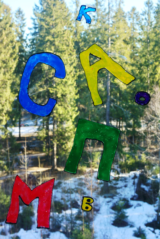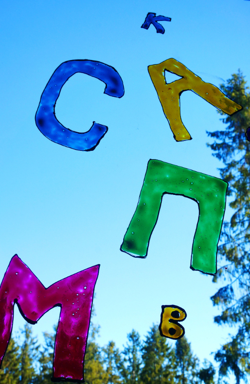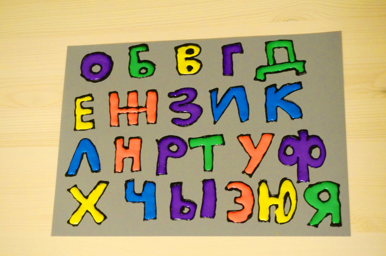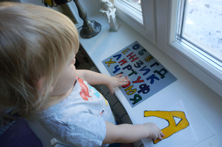 Школа дошколят (все о изучении букв, цифр, развитии логики, памяти, воображения, мышления)Мы продолжаем знакомится с русскими буквами. Когда-то давно был куплен набор витражных красок "Каляка-маляка", но как-то не использовался, потому как сохнуть они должны 24 часа и использовать их с Машей пока не очень интересно! Я сама нарисовала алфавит, и когда он высох, дала Маше с ним знакомится и крепить на окно. Теперь утро начинается с проверки, проснулись ли буквы? Вот так ярко и долгоиграюще учим азбуку.
