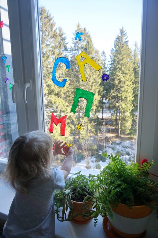 Спасибо за идею - дома море витражных красок, купленных ещё задолго до появления Лизочки и как раз на днях я подумала, что хочу как-то украсить окно в детской. Буду буквы писать по ночам ☺ А когда окна моете, вы их снимаете?