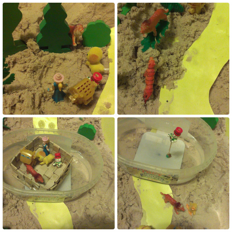 Сама не удержалась, сделала несколько "картин" и разыграла сказку "Волшебник Изумрудного города" к ребенкиному удовольствию. Но вообще,смысл в том, что ребенок сам разыгрывает разные ситуации и этим решает какие-то свои проблемы.![]()