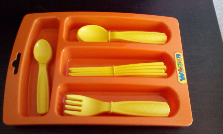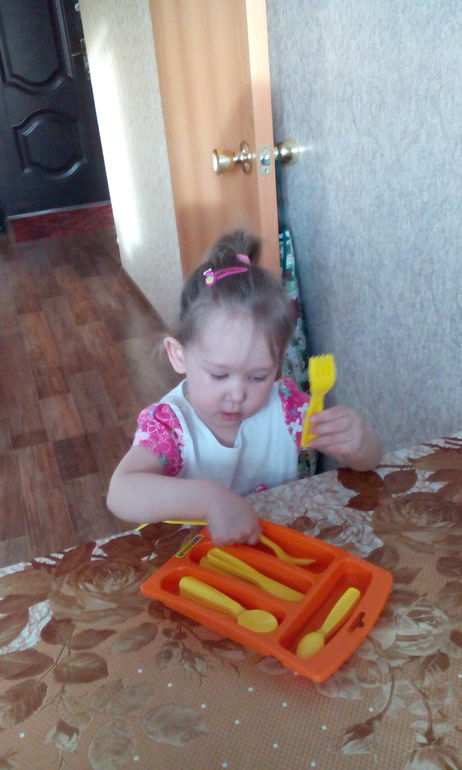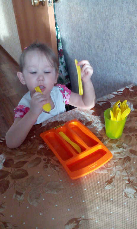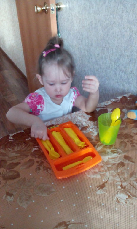Прикольно)) а я своей обычный даю, только вилки-ножи убираю. Сортировкой у нас пока и не пахнет, просто все одну ячейку складывает или вообще раскидывает.