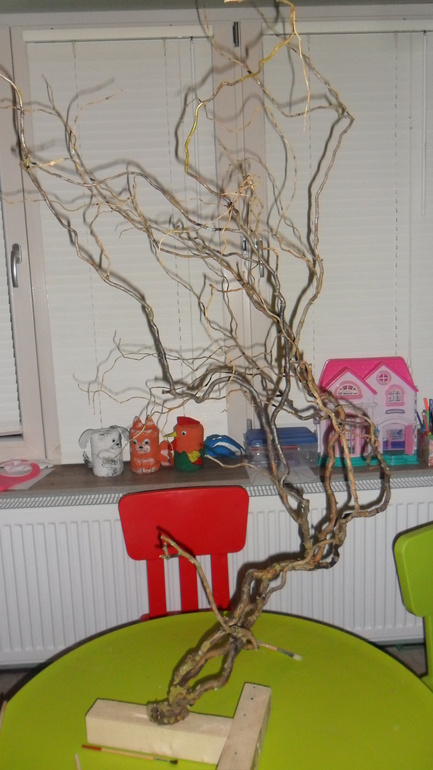Вот именно этим мы и занялись. Еще в феврале ветер свалил красивенькую веточку с соседского дерева. Уж не знаю как оно называется, но оставить на дороге я ее не могла. Уж больно красива и кучерява. Притащила я ее домой и оставила ждать своего времени. К великой моей радости муж ее не выбросил, не сжег в камине, не свез на мусорку. Даже странно.