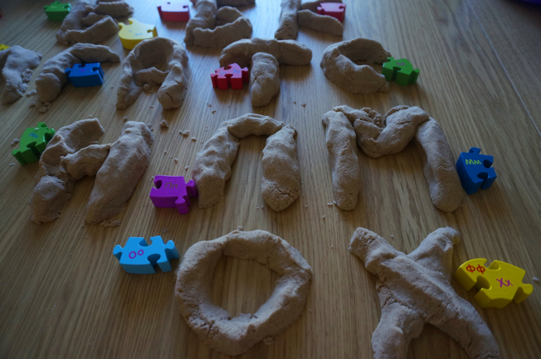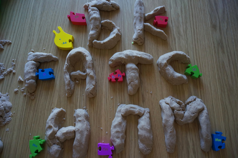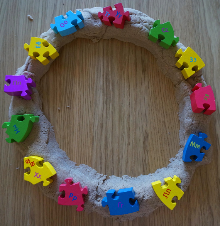 Школа дошколят (все о изучении букв, цифр, развитии логики, памяти, воображения, мышления)Понесло нас с Машей на азбуку во всех эпостасиях! Мы пробуем создавать буквы из всего, во что обычно играем! Она быстро вовлекается в процесс, и правда, все лучше запоминает буквы! На этот раз работали с кинетическим песком, пазлом-улиткой и формочками. Вот такие получились вариации. Больше о нашей азбуке в этой рубрике.