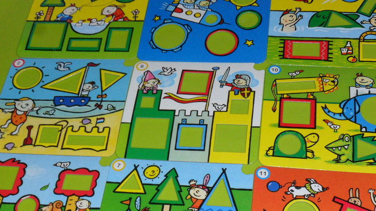 Первые четыре карточки предполагают изучение цвета. Следующие четыре - форму. Остальные - смешанные.