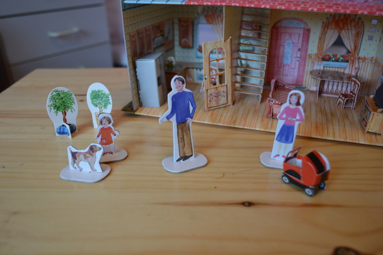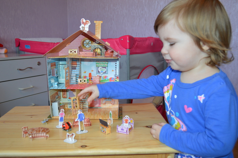 Катюша очень любит разбирать мебель на составляющие, а я потом заново всё собираю. Но если достать всё из домика и играть просто на столе - в принципе ей по силам и за стол всех "усадить" и спать "уложить". Так что с этим домиком нас ждет еще много разных игр)