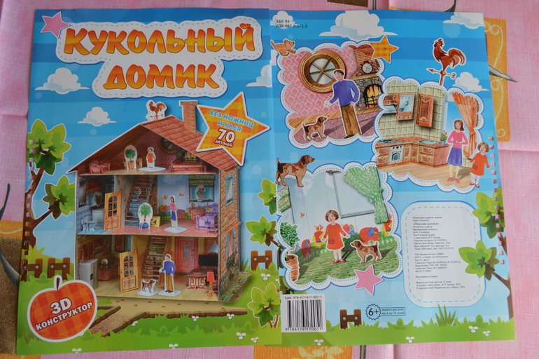 Не смотря на совсем невысокую цену, качество порадовало. Сам домик и герои из очень плотного глянцевого картона. Мебель и другие детали - из картона потоньше, но тоже весьма приличной толщины, прекрасно держит форму. Сборка без клея и ножниц, более 70 предметов, все двухсторонние и устойчивые, не рассыпаются и не заваливаются при игре.