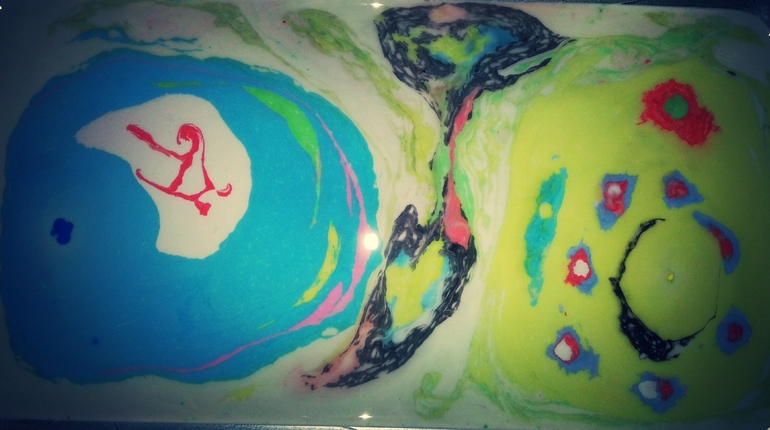 Художка ( красим, рисуем , придумываем новые способы рисовать)Вечером Аня рисовала на молоке. Однажды мы уже пробовали, но тогда получился совсем другой рисунок! Яркий, красивый.