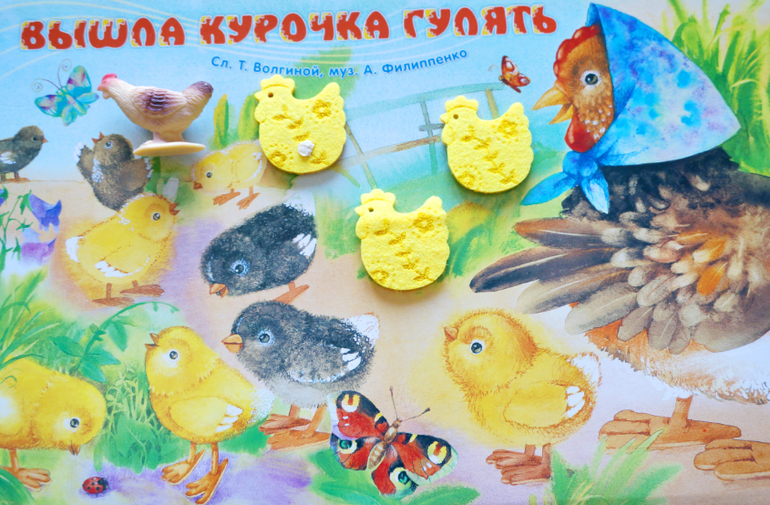 тут вспомнила песенка...вышла курочка гулять...а за ней ребятки, желтые цыплятки....
