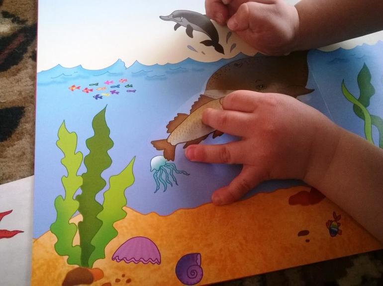 Игры и игрушки для детей от 2х-до 3-х летПрошедшую уже пятницу я посвятила морским животным. Утром сын посмотрел небольшой фильм о морских животных, я старалась также сама комметировать все что мы видели на экране. Затем перед обедом играли с наклейками в книжке "Чудесные наклейки. Где живет жираф" и заселили море морскими обитателями: акулой, черепахой, китом, морской звездой и тд.