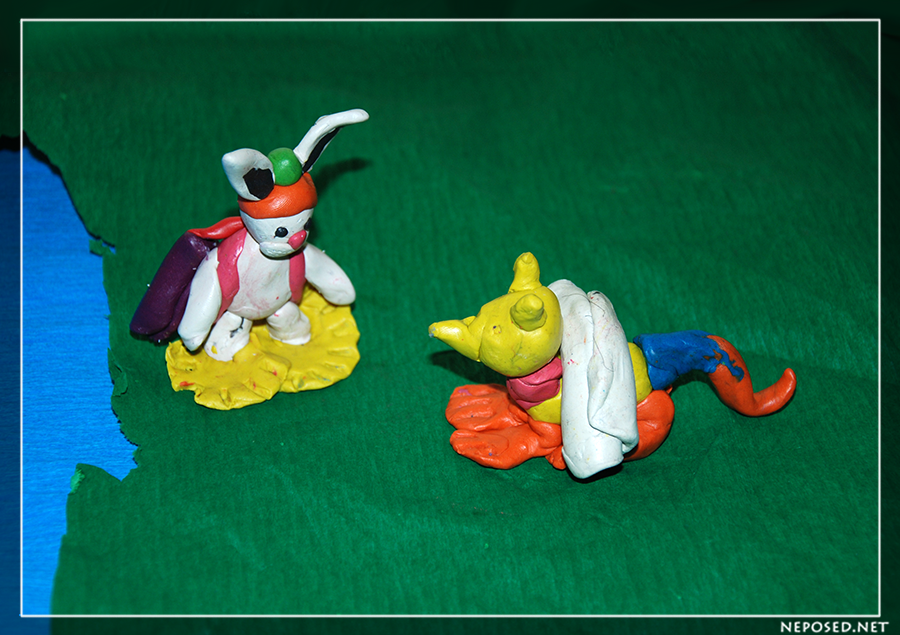 Заяц Коська и лиса Лариска решили пойти покупаться, взяли полотенца, одели ласты.