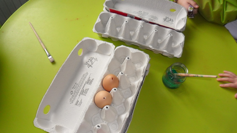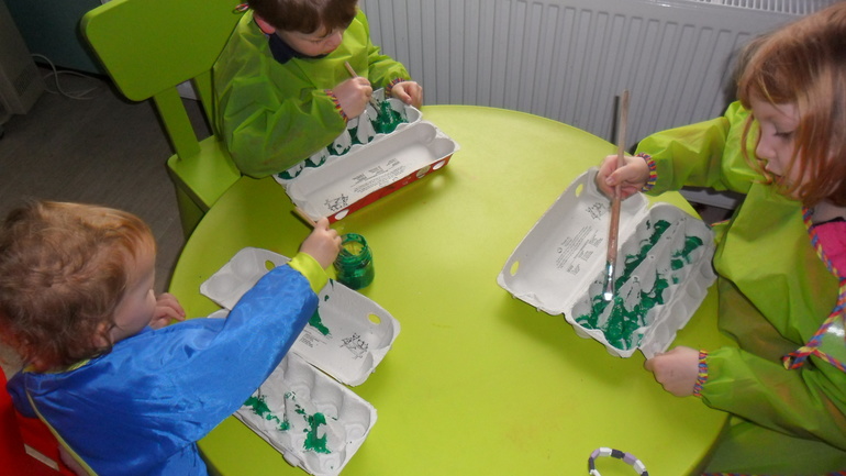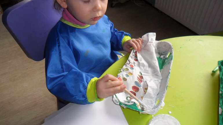 Коробки внутри покрасили в зеленый цвет. Дети старались изо всех сил. Такого затишья давно я не наблюдала. Даже успела почистить картошку для приготовления обеда :)