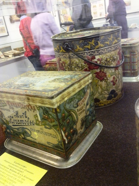 3. Изучить историю шоколада в России или просто полюбоваться искусными и "креативными" творениями художников-оформителей. Упаковки из-под шоколада и конфет в Российской империи это настоящие шедевры: музыкальные шкатулки, украшенные драгоценными камнями, портретами прекрасных дам и изображениями исторических сцен, - советские тематики не менее прекрасны: пароход "Челюскин", космос и Гагарин, породы собак, виды спорта, сказки. На фоне такого богатства, современные пестрящие шоколадки с цифровой графикой на обертках выглядят однообразными и скучными. Я бы от ведерка ниже не отказалась)