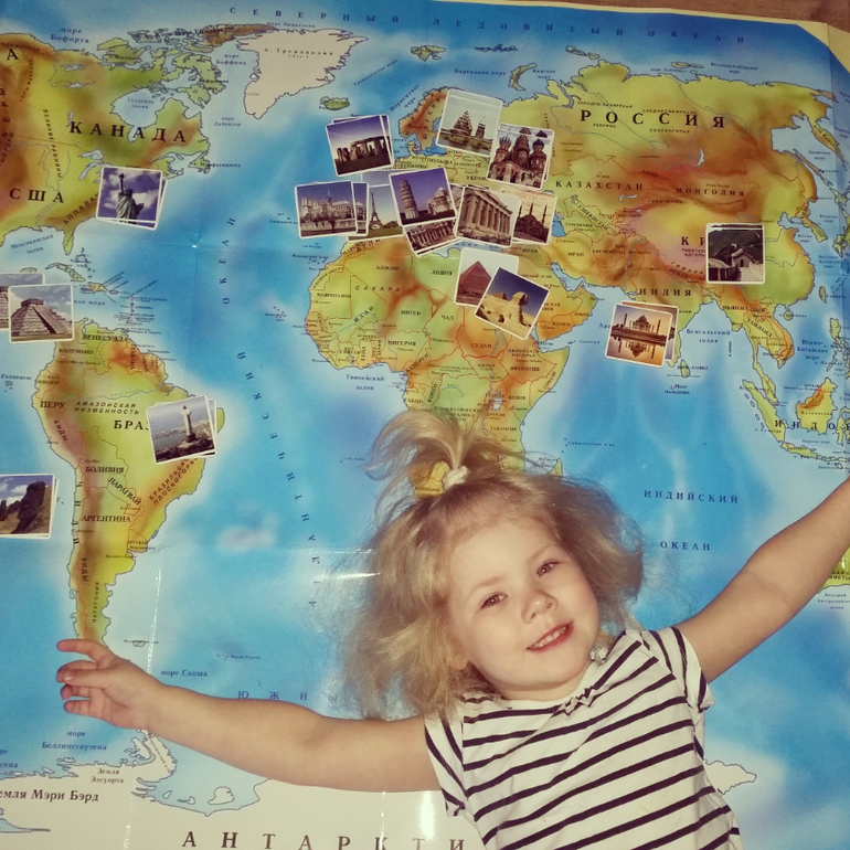 Начнем, наверное с самого интересного "Большое путешествие от Канады до Австралии" от "Уницы". Скажу честно, пока мы только изучаем физическую карту и немного знакомимся с обычаями некоторых стран. Более глубоко изучать страны Арине пока не интересно, но в этом и плюс комплекта - изучать его можно с раннего возраста до школы, а то и в школе еще. Что нам помогает изучать страны: