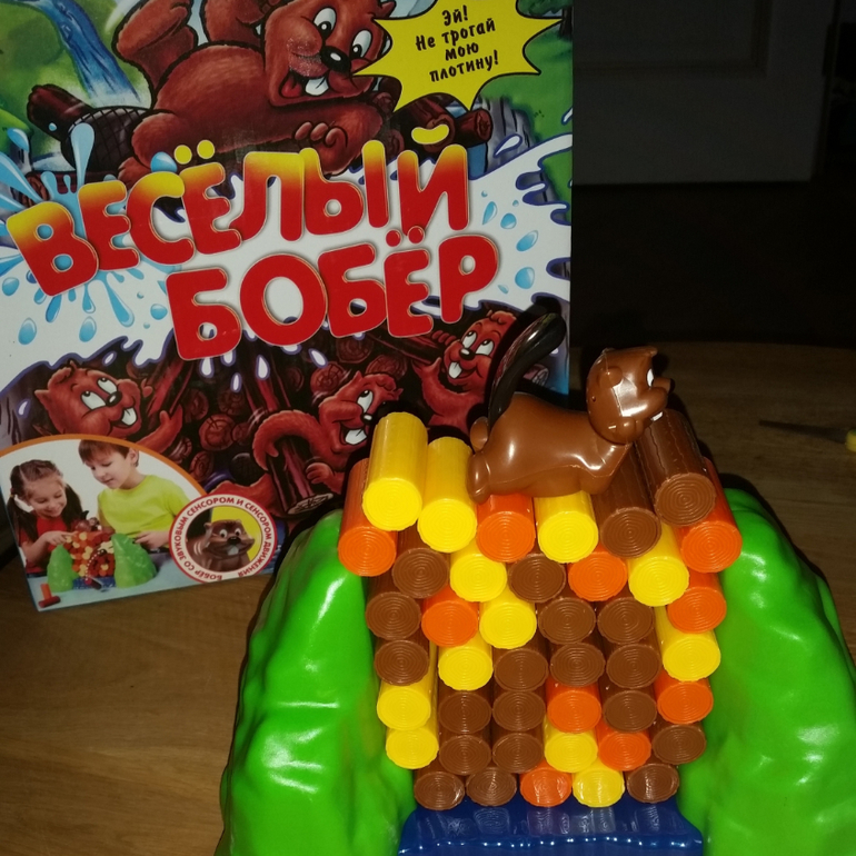 Суть: каждый игрок поочередно выталкивает палочкой бревна из платины. Побеждает тот кто первый соберет по 2 бревна каждого цвета. Бобер ругается, если его неаккуратно потревожить))))
