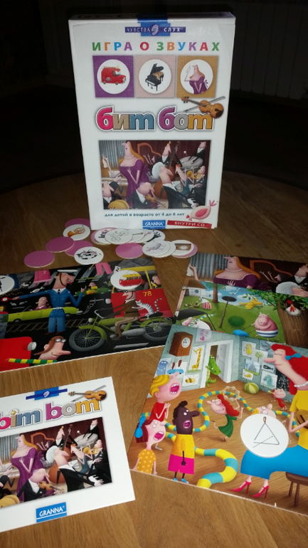 Суть: 4 игровых поля и много фишек с изображениями. Игроки слушают звуки с диска и если угадывают берут соответствующую фишку с изображением на свое поле. Победит кто соберет все поле с фишками
