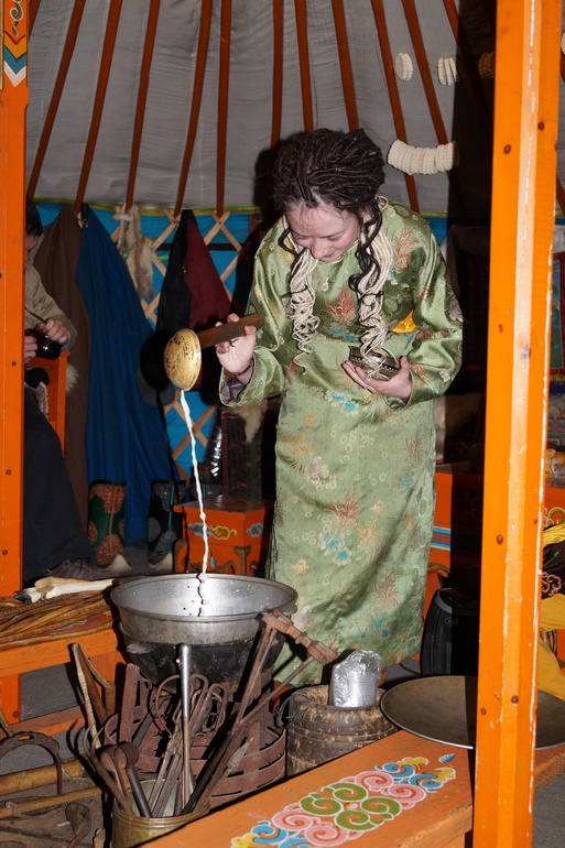 Для того,чтобы угостить всех гостей чаем, нужно нарядить и монгольскую хозяюшку)