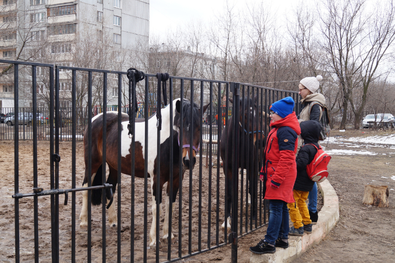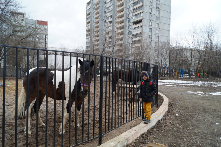 гуляют две лошадки, Левчика от них было не увезти) нашел где-то морковку и кормил их, потом они чуть не слопали его ботинки)))))))