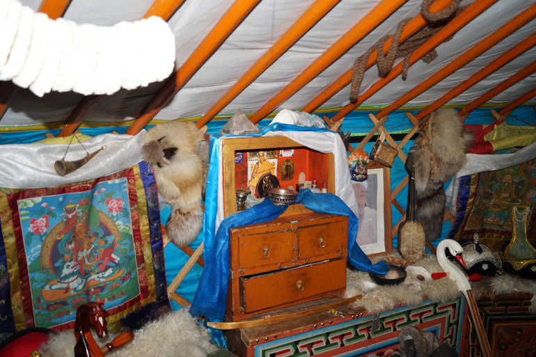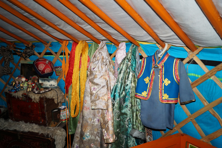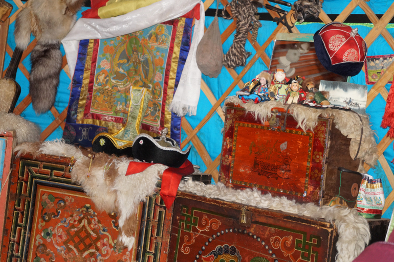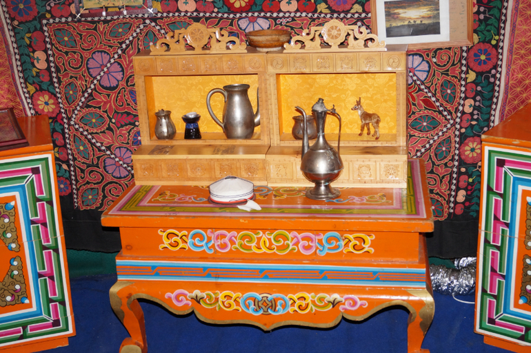 Юрта поделена на мужскую и женскую сторону.