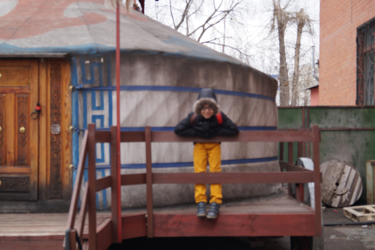Левик у входа в монгольскую юрту ( пришлось нам отлучится ненадолго ((( )
