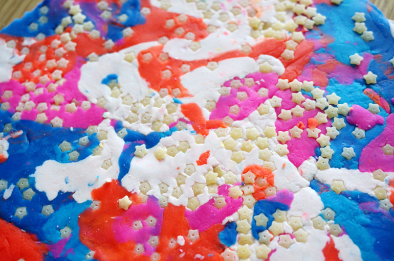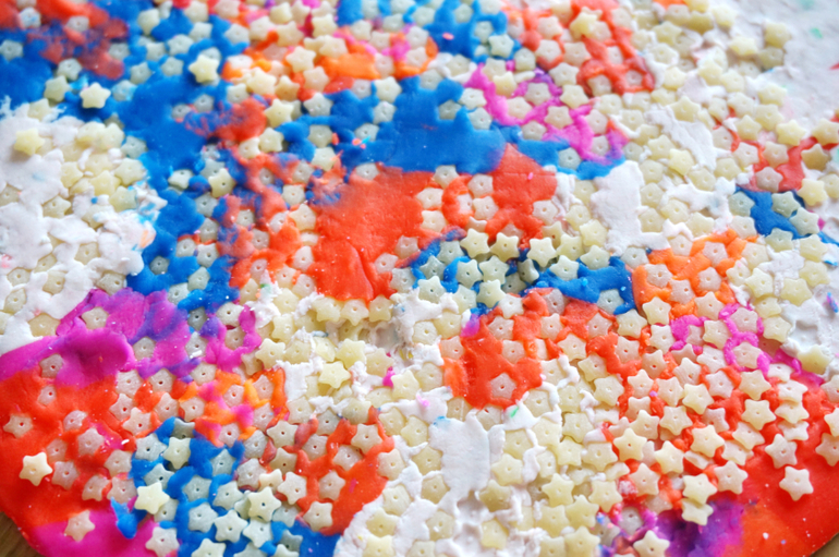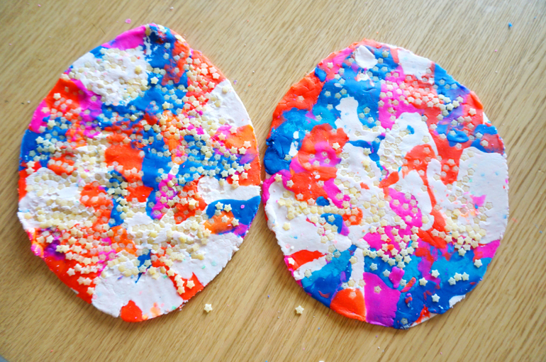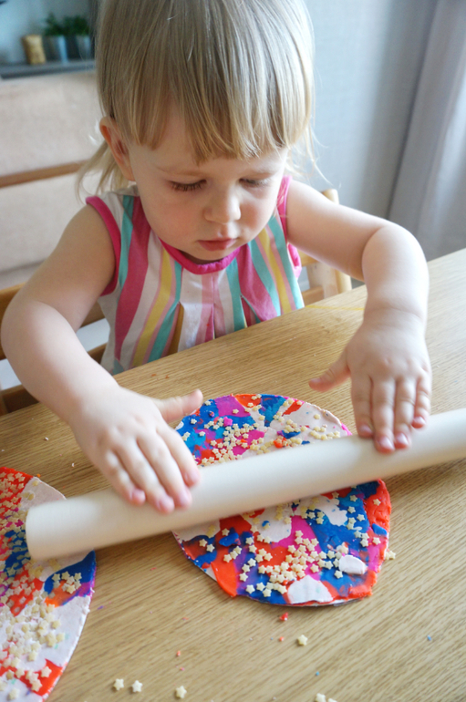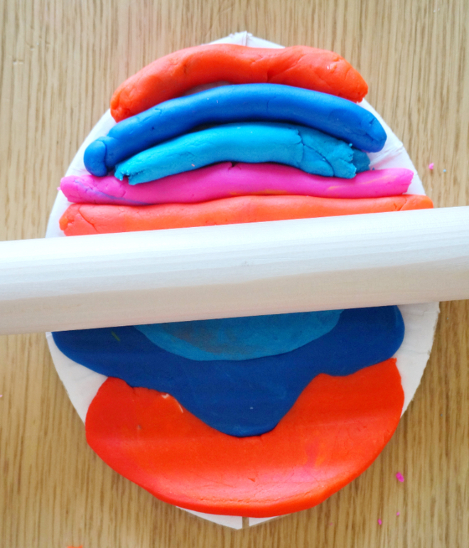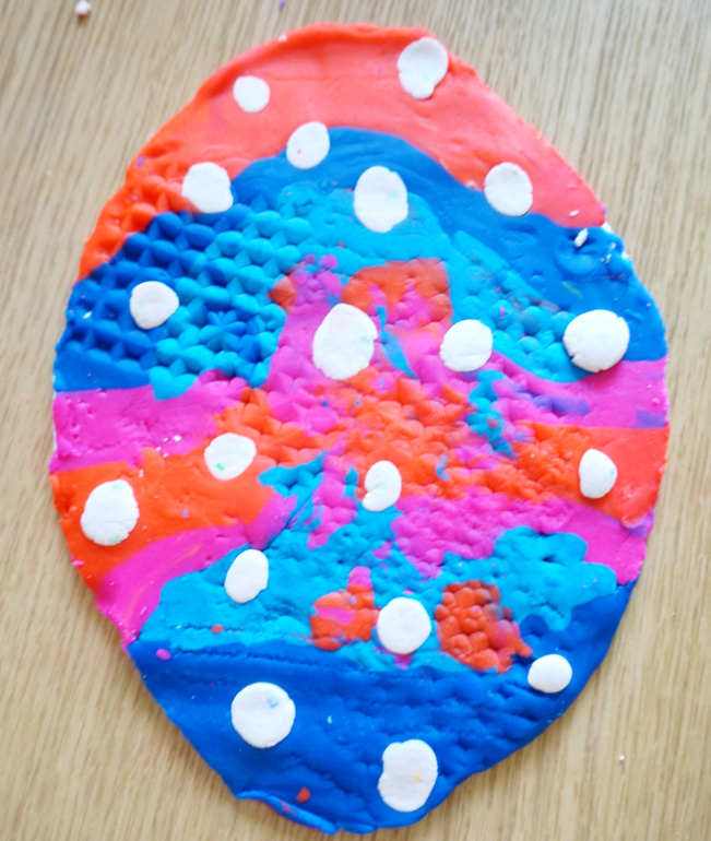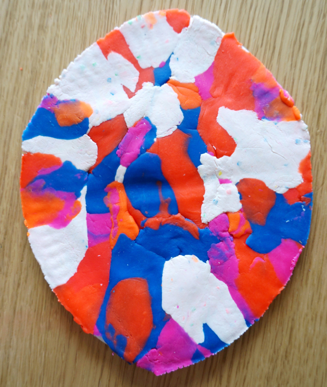 Мистер Умелец или Очумелые ручки (поделки, аппликации, интересные находки, идеи и задумки)Пасха все ближе и ближе. Объемные яички из пластилина мы уже делали, пришел черед плоских. За основу взяли чуть обрезанную одноразовую бумажную тарелку. Экспериментов у Маши было много: прилепляли разноцветный пластилин, ровняли скалкой, кололи вилкой, били толкушкой, украшали шариками, а закончилось все декором из мелких макарон-звездочек! Получилось так солидно, что решили сделать бабушкам подарки к празднику!