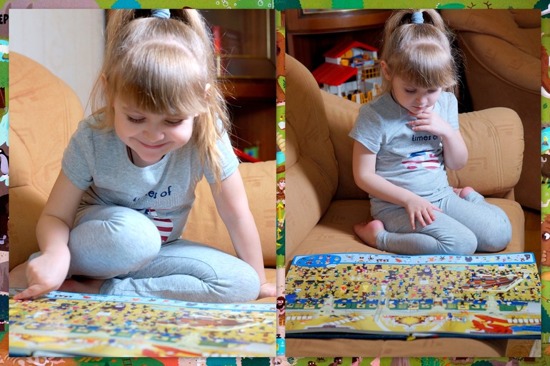 Кстати, я заметила, что Даша у нас более терпеливая: она сидит подолгу ищет потерявшихся человечков и совершенно не расстраивается, если сразу они не попадаются на глаза. Нику же это занятие быстро надоедает.