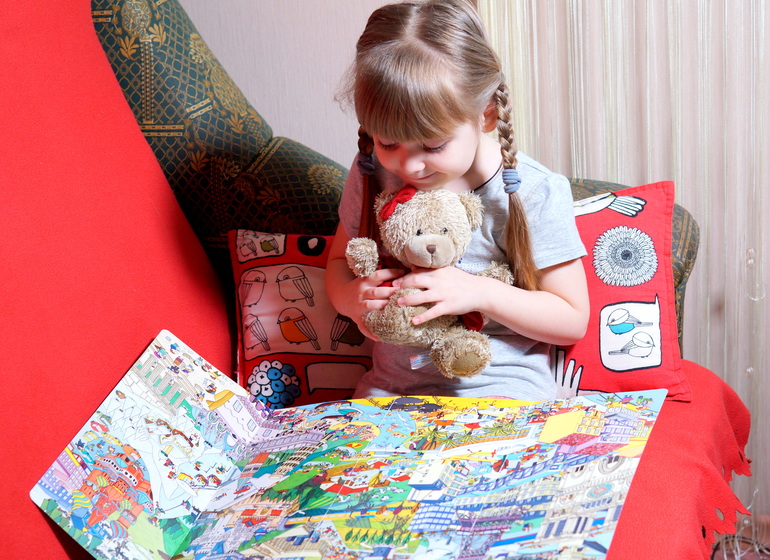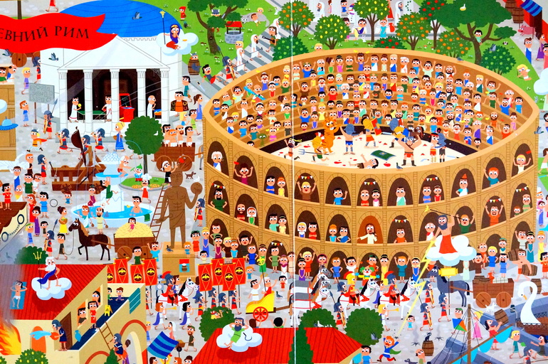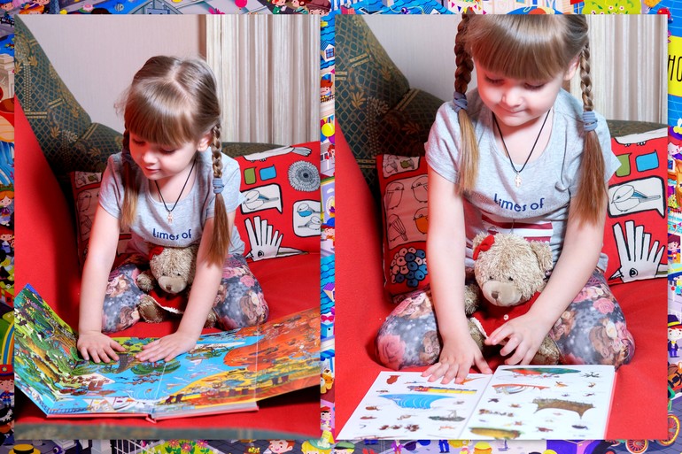 Книга очень красочно и детально прорисована, поэтому дети зависают над ней по полдня.