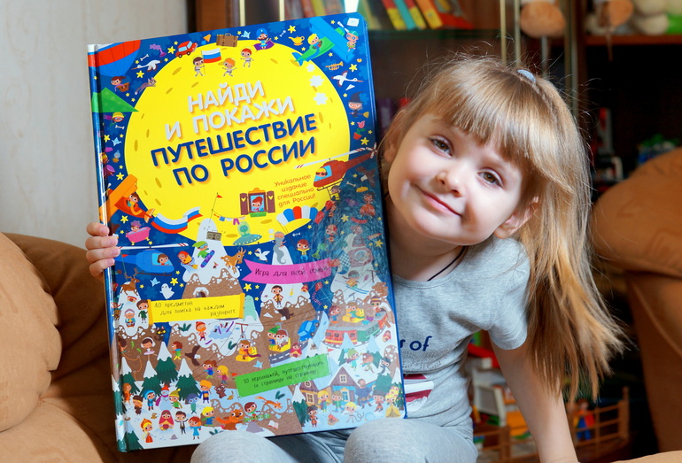 Вообще-то это была первая книга, с которой мы познакомились. В ней представлены главные достопримечательности нашей Родины. И также даны персонажи, которых надо найти на картинке.