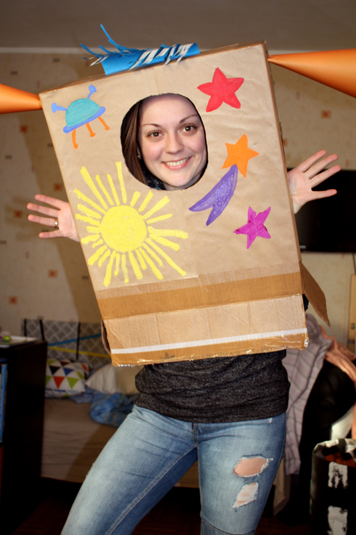 "Костюм" делала для сына, я в него еле залезла, руки не просунуть мне целиком)