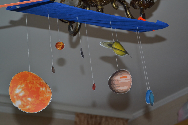 Надули воздушные шарики. Соорудили под люстрой солнечную систему.