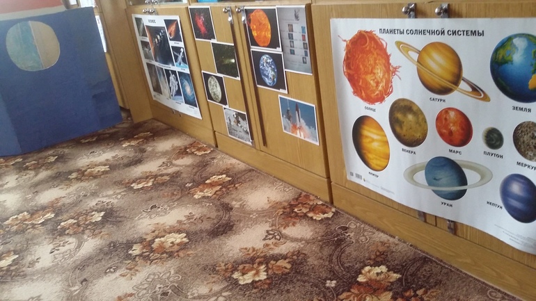 На мебель наклеила плакаты с планетами. Заказывала заранее такой и такой, пригодились карточки.
