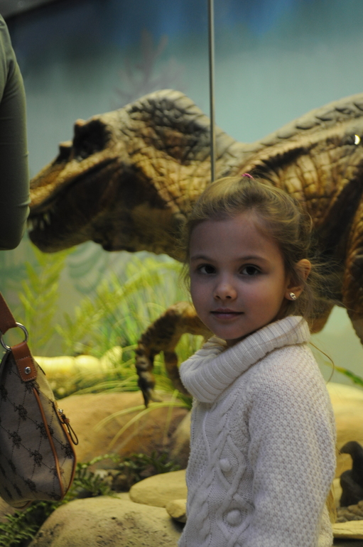 Послушали, как рычат динозавры на 3-м этаже. Целая толпа собралась на них смотреть: