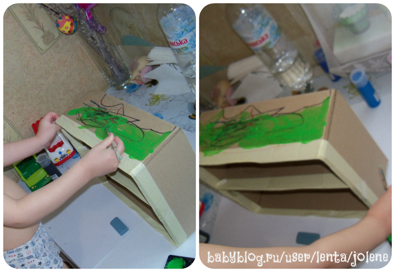 Я потом обклеила все скотчем, т.к. гуашь, даже когда высохнет, все равно остается на руках.