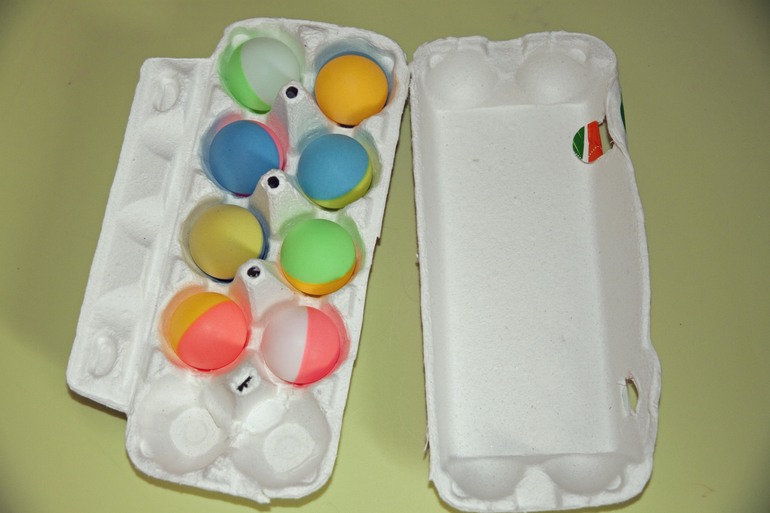 В данном случае мячики для настольного тенниса (идеально ложатся в ячейки), помпоны так же очень подойдут.