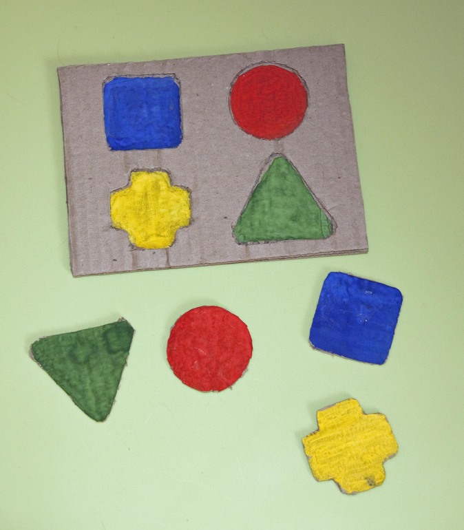 Для изучения фигур и цвета, вот такая "доска" из картона, ну и фигуры соответственно.