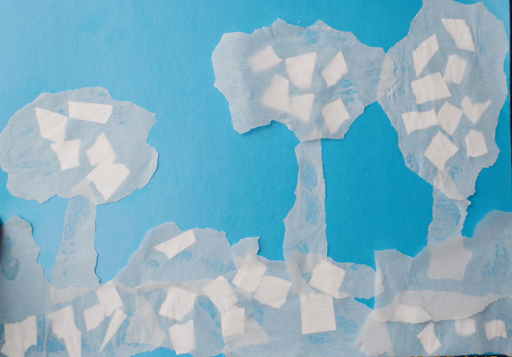 Рваные бумажки,а крона из пергамента для выпечки)),рвать ему нравится)