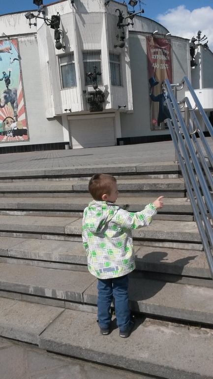 Всех пресмыкающихся Родион любит, поэтому восторженно ее рассматривал. Клоун развлекал детей, рассказал об основателе театра Владимире Леонидовиче Дурове, показал его портрет и барельеф.