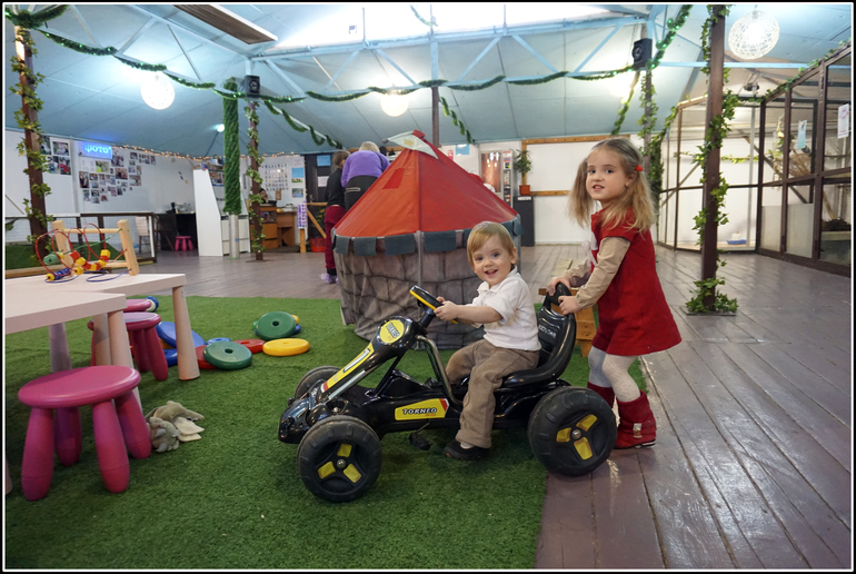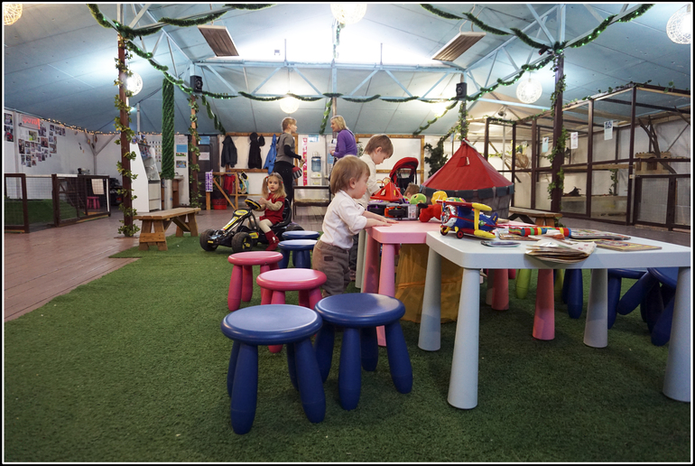 Запаха нет совершенно. Даже от подстилки. Сотрудники то и дело убирают сено и древесную стружку, которые были вынесены посетителями на обуви из вольеров. Я обратила внимание, что одна женщина, сотрудница, практически всё время быстро и тихо то там, то тут мыла с тряпкой пол, то есть постоянно поддерживался порядок. Так что впечатления самые хорошие. Да, ещё очень понравилось, как подошли к обустройству игрового уголка, если его можно так назвать: это довольно большая зона в самом центре помещения: столы, стульчики, скамейки, куча игрушек и раскрасок, игровая палатка в виде замка, машинка, на которой можно безнаказанно (если немного народу и никому не мешаешь) погонять по периметру.