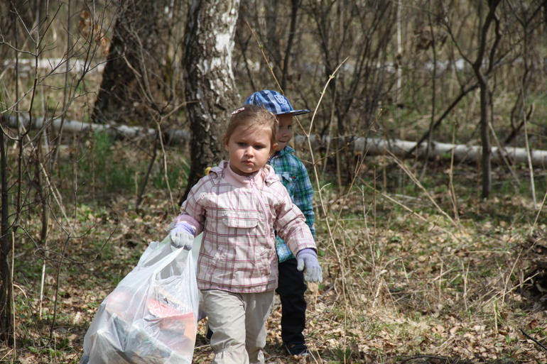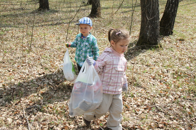 Дети очень воодушевились, поэтому сначала и палки принимали за мусор) Потом стали различать, что нужно выкинуть, а что нет.