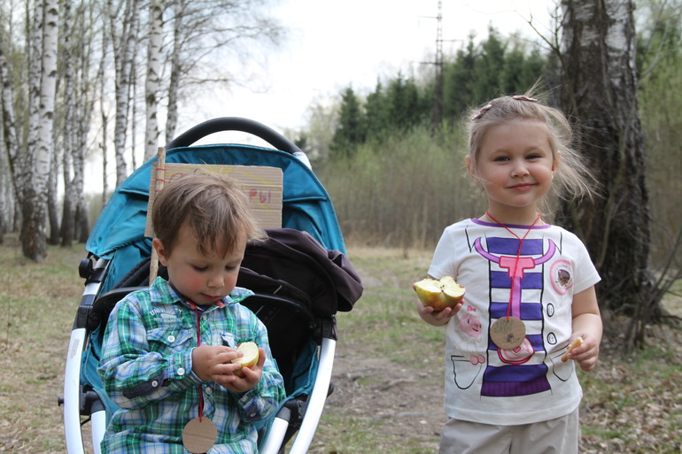 Позавчера было вполне себе лето, так что вместо детской площадки мы с подругой и детьми отправились в ближайший лесок.