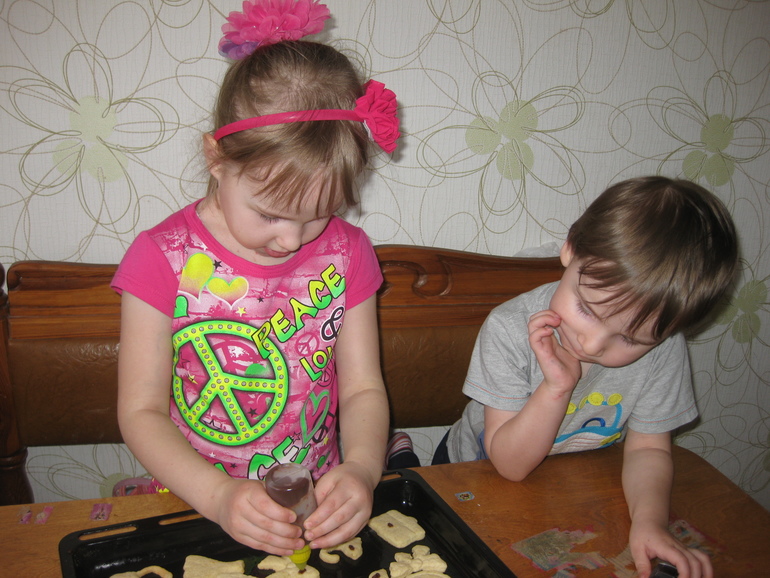 На удивление, у младшего получалось лучше. Он даже сделал рыбку).
